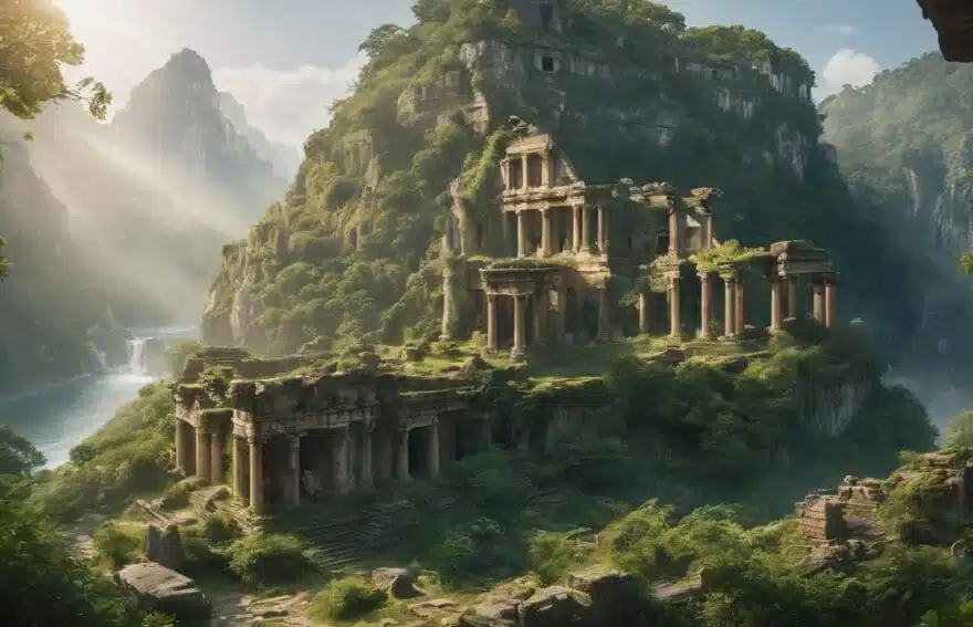 Scars from ancient catastrophes mar the landscape, hinting at a once-cataclysmic power that brought ruin upon these forsaken shores.